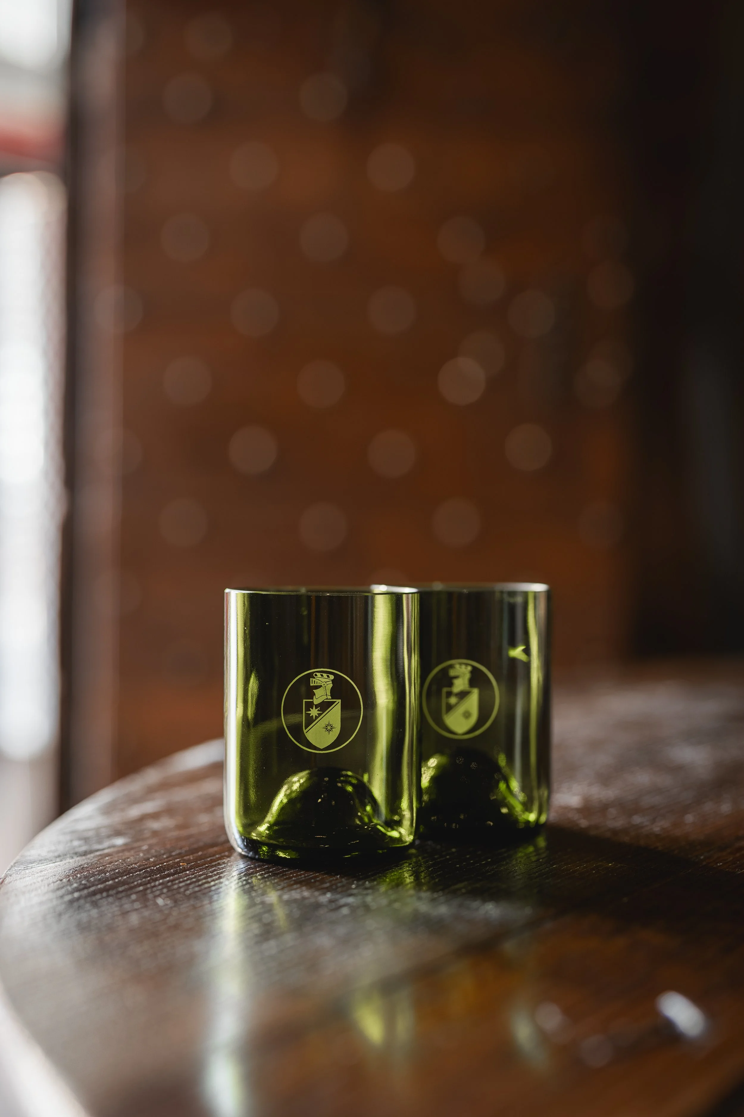 Where possible we reuse and recycle. Aside from daily recycling and allocation, visitors to the cellar often admire the wather glasses made from our old bottles.